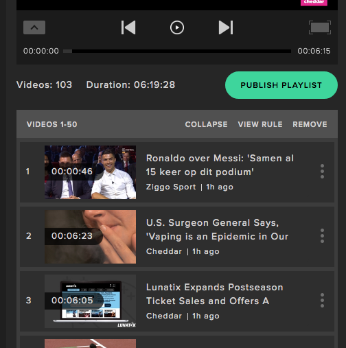 After making changes to the playlist's video contents, the user must save it to take effect. To do this, the user would click on the button PUBLISH PLAYLIST.